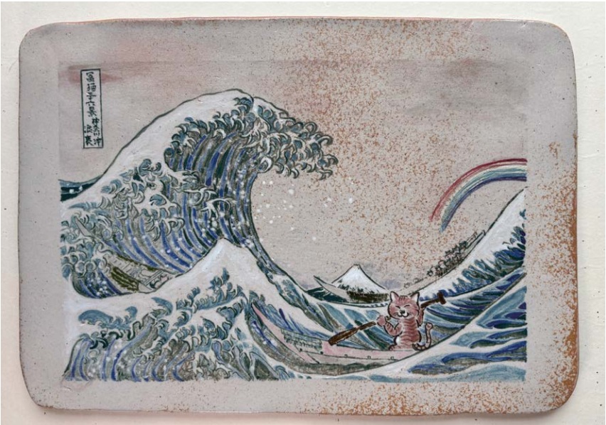 冨猫三十六景 神奈川沖浪裏(陶板画355×250mm)